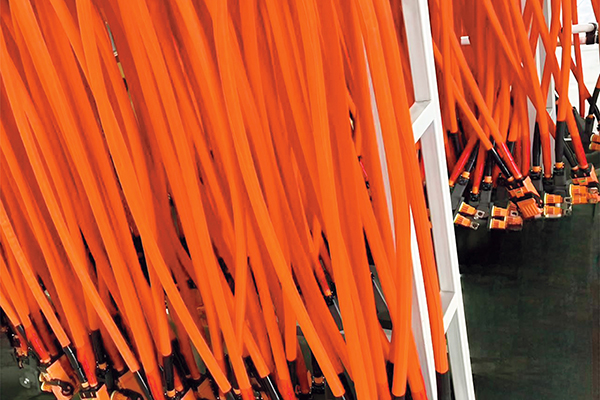 ST2401高耐摩耗スリーブは、PETモノフィラメントとマルチフィラメントを高密度に平織りした、堅牢な厚手仕様の自己巻きスリーブです。機械のシャシーハーネスを走行中の飛び石や摩擦から強力に保護します。鮮やかなオレンジカラーにより高電圧回路の識別を容易にし、さらにネズミ咬害防止性能も備えた多機能プロテクターです。